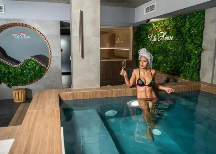 Dotato di una piscina con trampolino e una terrazza, il "The House" Апартаменти И Термална Зона è situato nel quartiere Kamenitza di Velingrad, a soli 1 km da Mineral Pool Velingrad. Accogliendo gli ospiti con una piscina con trampolino, una jacuzzi e una sauna quest'appartamento si trova vicino a Historical Museum Velingrad.